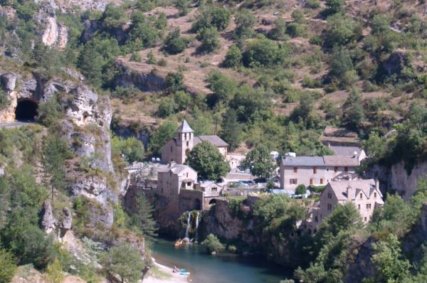 Passage à Quézac connue par son eau de source pétillante. Puis en rive gauche, nous verrons des villages accrochés des deux côtés de la rivière et des châteaux dont celui de Castelbouc. A proximité, il vient d’être découvert dans une grotte des traces de pas de dinosaure. Arrivée à Sainte-Enimie, village médiéval fondée autour du monastère fondé par Enimie, la sœur du roi Dagobert et de sa source miraculeuse.